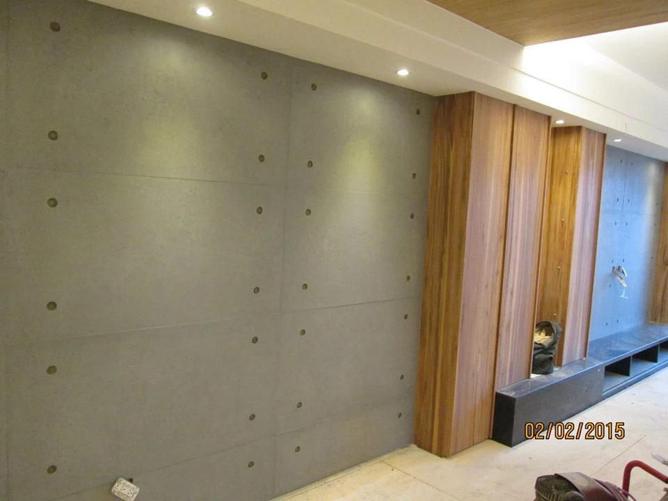 木紋清水模是近年來頗受歡迎的一種建築設計.常見於用在建築外觀.大樓公共空間.商業空間.辦公空間.餐廳等場所.能營造出獨特的空間感受.但其缺點為造價太高.且施工不易.常使業主及設計師望之卻步.所以常用仿木紋清水模來代替.其優點有造價較為低廉.而且施工條件不受限制.不用開模.可直接施工在新舊水泥牆.木板.石膏板.矽酸鈣板.水泥板等建材.工期可大為縮短.容易掌握進度來配合完工時間.